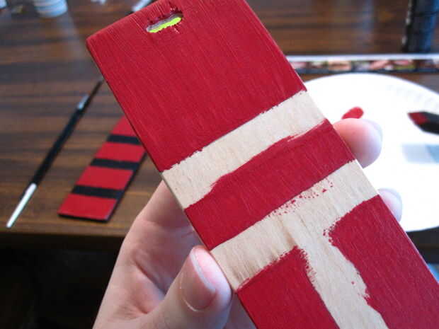 Utiliza un cepillo más pequeño para el negro (regaliz por favor) y que hacer negro como el color final, para que cuando pinté el rojo (Burdeos) antes, no tenía que preocuparse por mantener limpio los bordes.