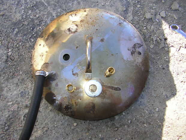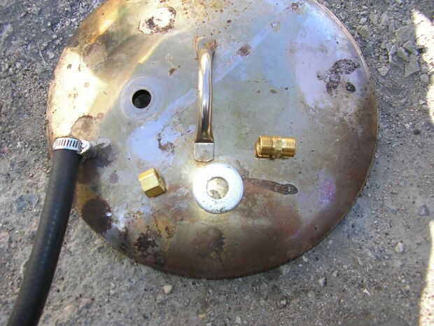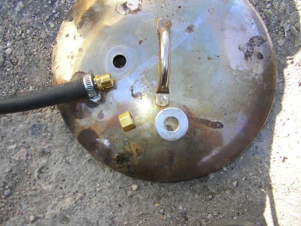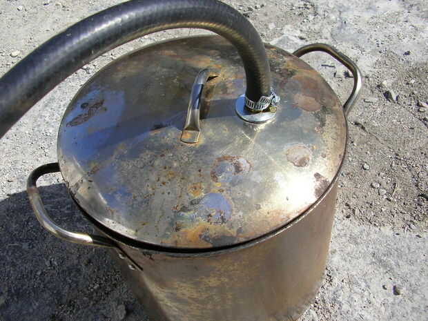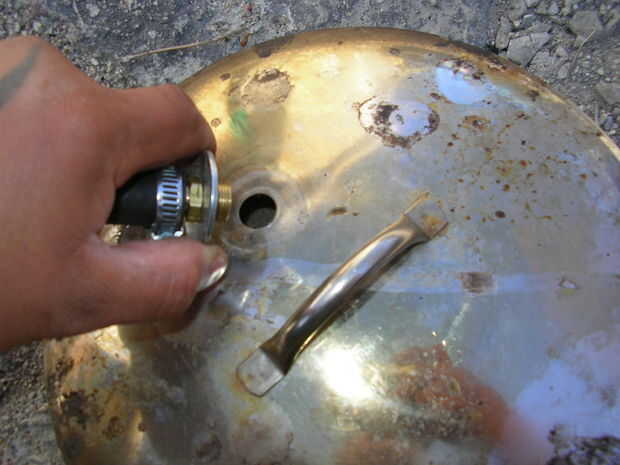 Sacar la tapa de la olla y haga un agujero para el adaptador para sujetar la manguera.  Ver fotos.