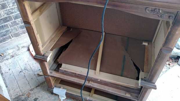 Me sacó todos los cajones y descubrió que cada área cajón tenía su propia carcasa madera separada. Cada estante también tenía su propio soporte de madera.
