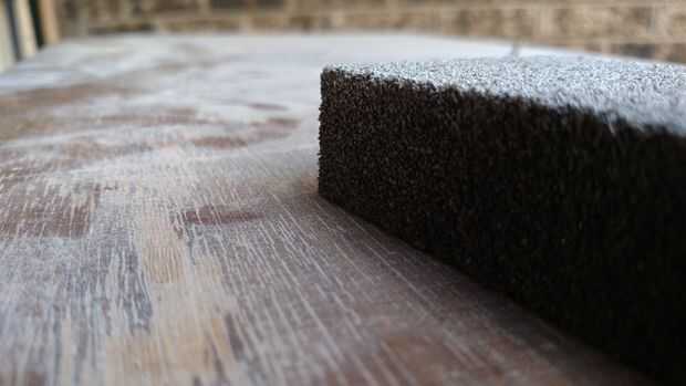 Luego lija en la parte superior y lados para tratar de quitar el barniz que era agua dañado o pelado después de décadas de uso.