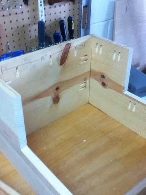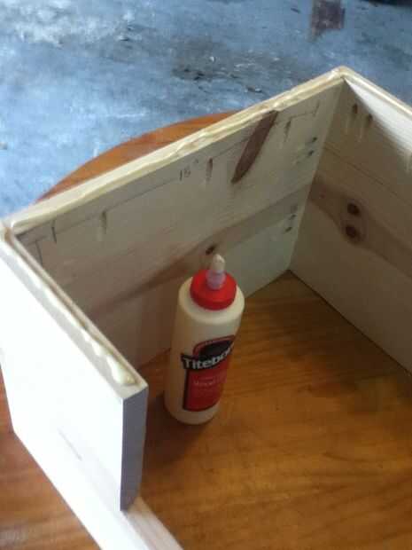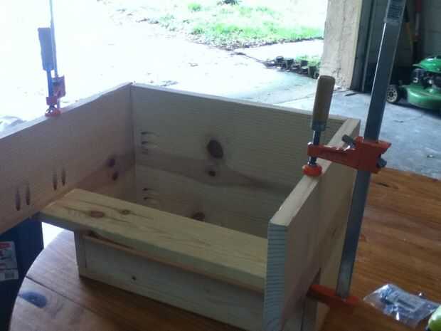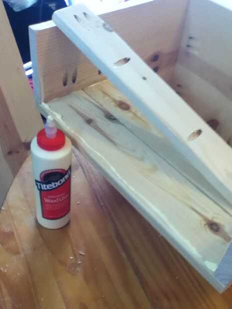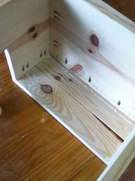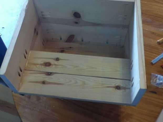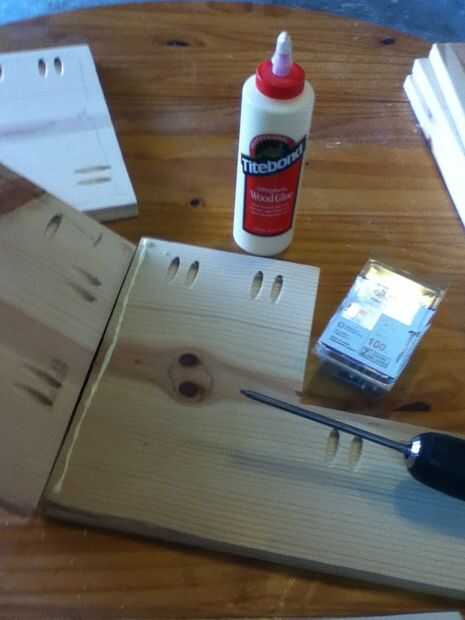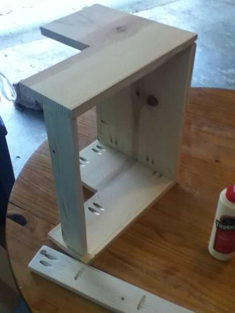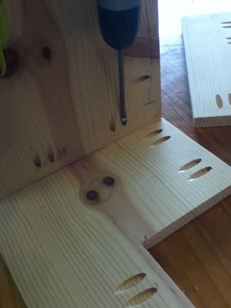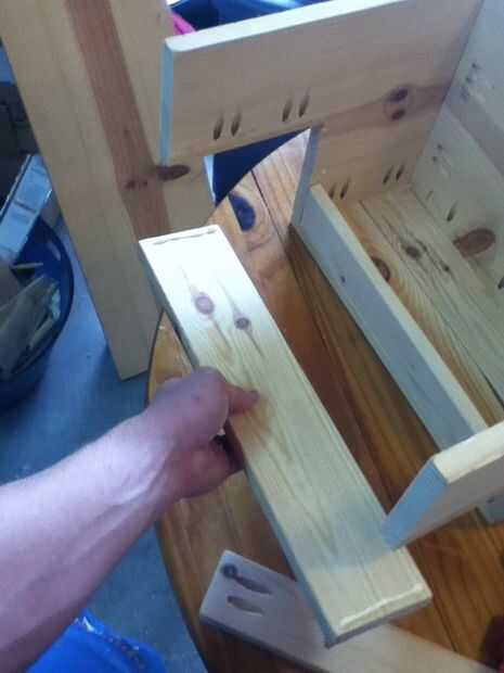 Voltee el taburete y fijar los pasos superior su forma pieza por pieza para el paso de la parte inferior y los soportes de trabajo.