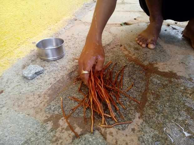 Lavar las raíces de banyan con disponible agua limpia del río o agua del grifo.