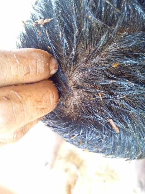 Masaje para que la pasta llegue a la región del cuero cabelludo.