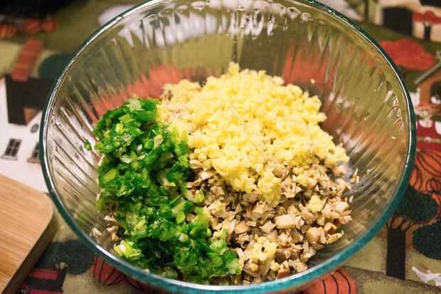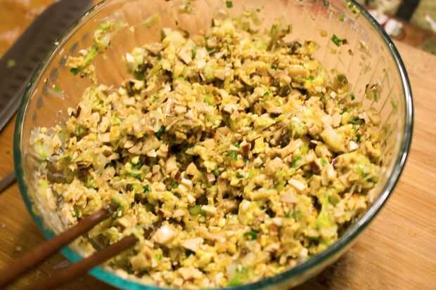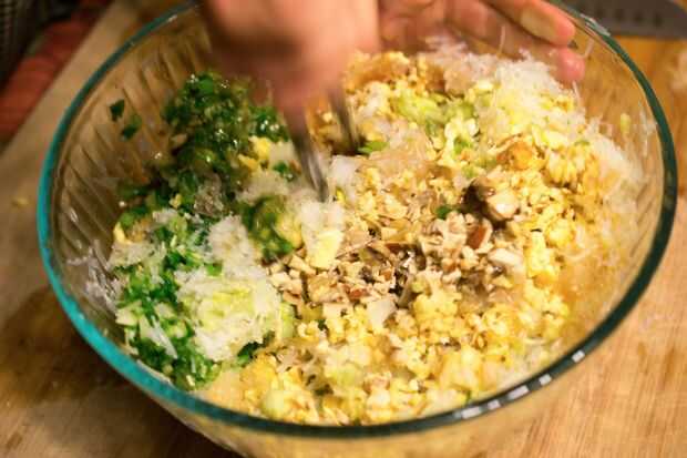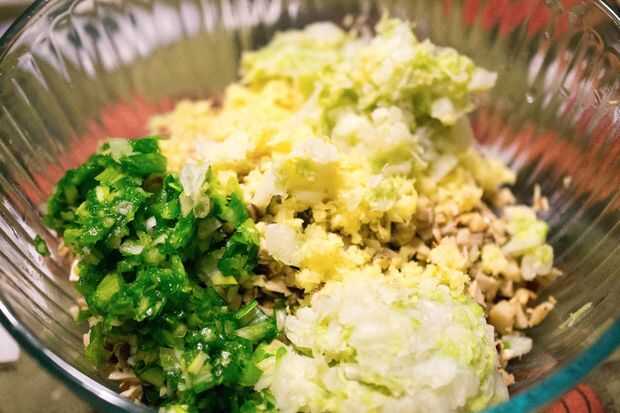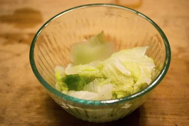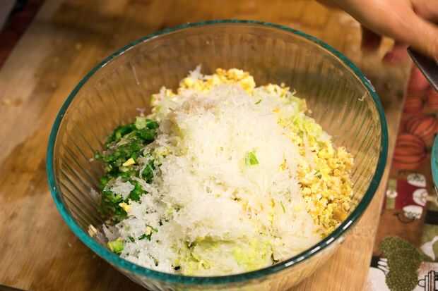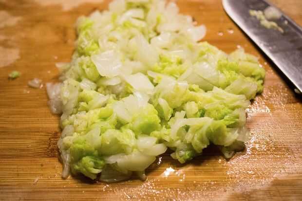 • Blanch o sofríe la col napa, luego exprima como mucho exceso de agua como sea posible.