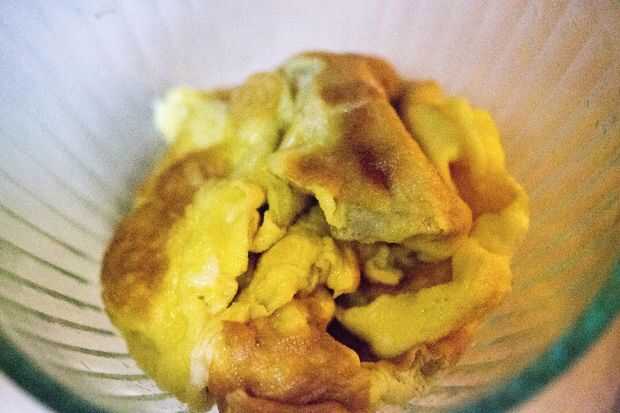 • En un tazón pequeño, batir los 2 huevos y, a continuación, freír en media alta a la consistencia de la tortilla o frittata