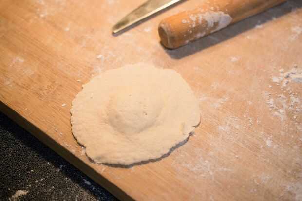 • Cada lado cortado de la harina, luego aplanar con la palma.