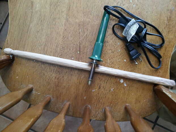 Con una estufa de leña, tengo por diez dólares, grabar su nombre en el palillo, crear diseños, lo que quieras. Viola, su propia firma de baqueta!