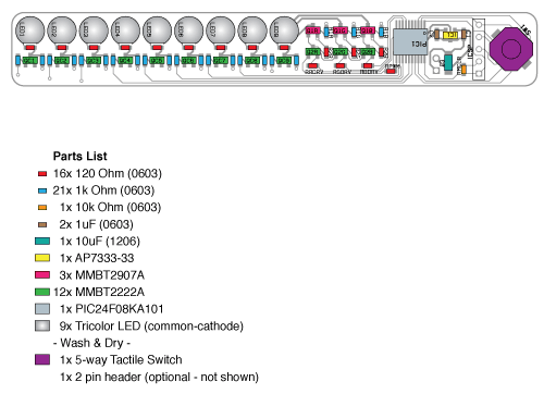 Soldadura de todo _but_ el interruptor. Luego lavar la placa con agua. He tenido muchos problemas de LED parpadeando un rato después de la Asamblea debido al leve cortocircuito causado por residuos de fundente. Empalmes de la soldadura con fundente de alta calidad, pueden acumular polvo y con la humedad en el aire crea conducta eléctrica. Los problemas se fueron después de que empecé mi PCB de lavado.