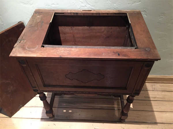 - Una caja de madera y la costura hilo carrete de almacenamiento estante fijado en el interior de la puerta del stand (que mi esposa quería mantener y reutilizar como parte de carro nuevo)