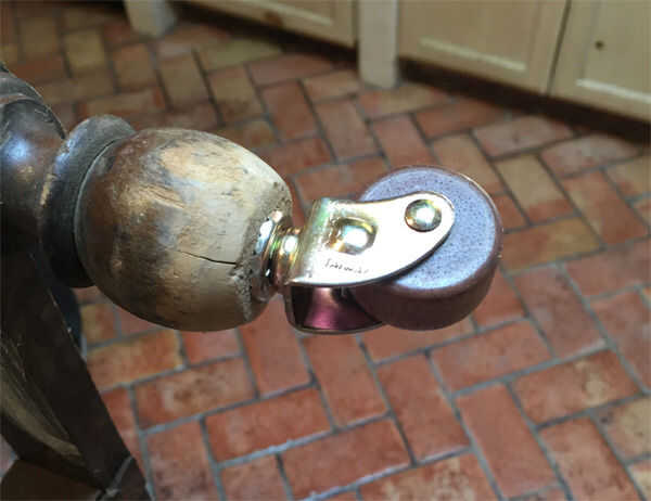 Mi esposa fue el diseñador general de este proyecto (como de costumbre, desde que era un diseñador por carrera). Agregó algunos detalles de borde decorativo y diseños a la cesta. Ella mantuvo el estante de almacenamiento original de coser hilo carrete en la parte posterior de la puerta para guardar de la barra de accesorios. Ella consiguió algunas ruedas y taladré agujeros en la parte inferior de las patas del carro para dar cabida a las fundas para las ruedas. Con su ayuda, nos pusimos las ruedas encendido y de trabajo.