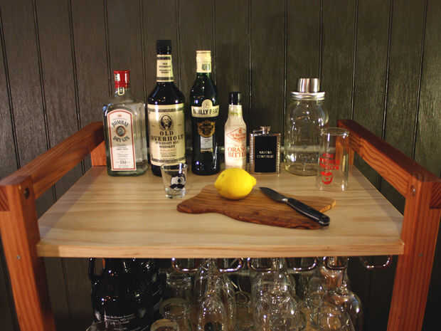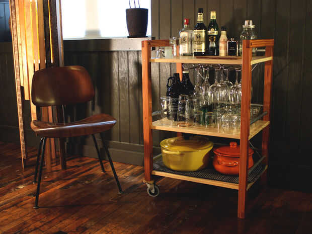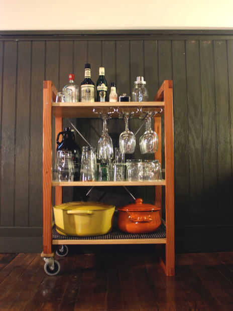 Licor está en una onda de la cultura pop ahora, impulsada por un programa de televisión sobre un conflicto, hombre anuncio emocionalmente disponible y un resurgimiento en el consumo de cócteles. Barra carros han brotado por todas partes, prestando un aire algo bohemio incluso el drabbest Apartamento tipo estudio. Agradable carros de mediados de siglo son demasiado caros, así que hice mi propia versión con algunos rescatados del abeto de Douglas y restos de conducto eléctrico. La tienda de caja naranja grande proporcionó algunos accesorios y ruedas, y yo estaba en el negocio.