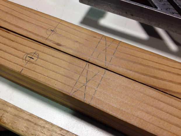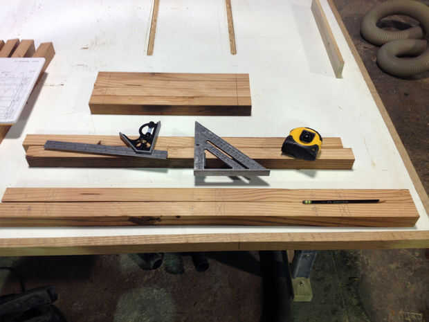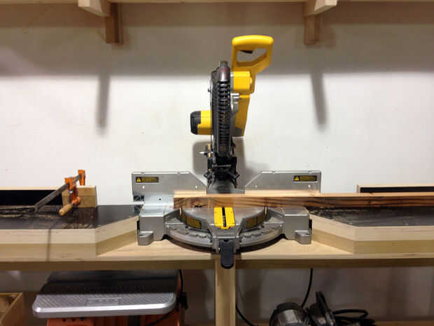 Para los empalmes del regazo, use una escuadra para tirar una línea a través de 1-1/2" abajo de cada extremo de cada espacio en blanco. Use un calibrador de inglete o cortes transversales trineos para barbilla termina en 3/4" de grosor. Establecer los cuatro 18" piezas de a un lado.
