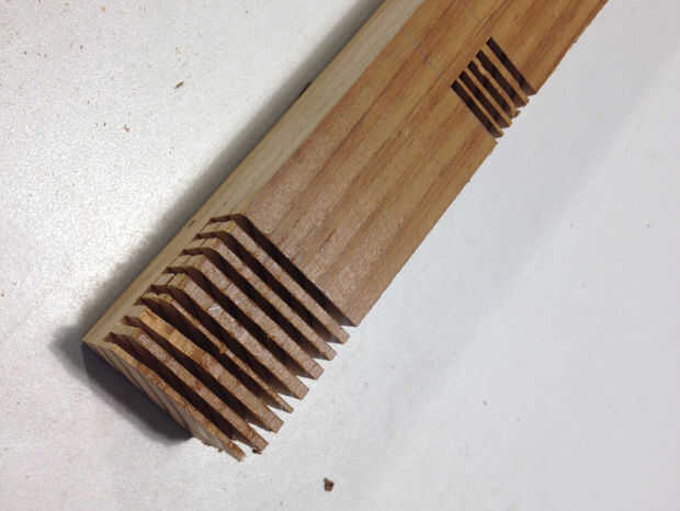 Golpear las obleas residuos de madera hacia fuera con un martillo y limpiar cada empalme con un cincel. Arena cada pieza con papel de lija grano 100.
