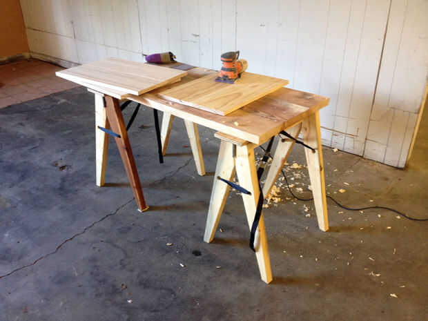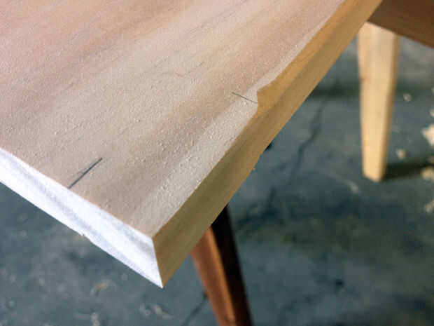 Golpeó con otro pase de la lijadora orbital en grano 120 para pulir para arriba. También facilitó los bordes, excepto donde sería asentadas en las ranuras, con una carrera ligera del avión de mano (se muestra en la tercera foto). Para el estante inferior, sacar una muesca en las dos esquinas que es 1-1/2 "x 3/4 para montar alrededor del marco.
