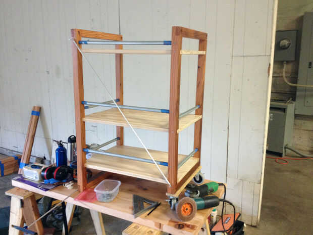 Vuelva a ejecutar todo con papel de lija grano 120 y capa de acabado de su elección. Usé un alto-construya, laca cepilla muy dura ya que el carro enfrentará a algo de humedad. Hice dos capas en cada superficie y 3 capas en la parte superior de cada estante, que verá el desgaste más. Una vez seca la laca, derribar cualquier parche ligeramente áspero con papel de lija de grano 400 3, luego agregue una capa de cera en pasta para la protección adicional.