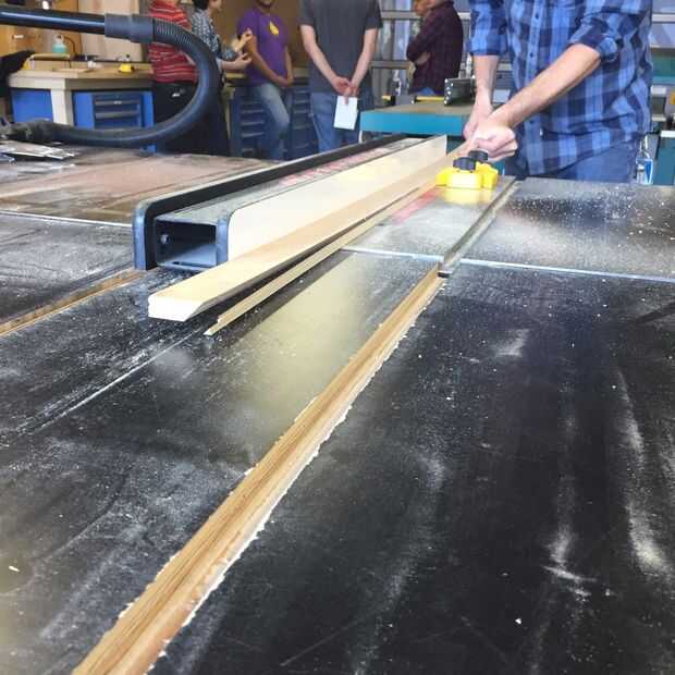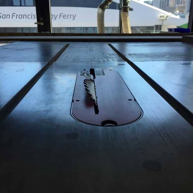 Joey, el Gerente de la tienda antigua en muelle 9 me ayudó a cortar el 98" pedazo largo de madera en la Sierra de mesa.