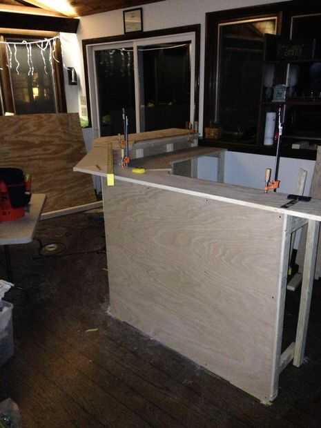 Hacer esto para ambos la barra arriba y la encimera. También sugiero utilizar cartón para los ángulos y de opusieron a la madera costosa.