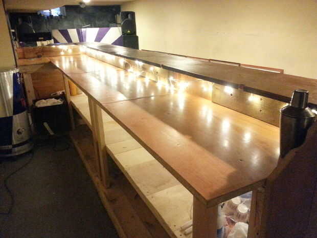 Mi fraternidad estaba en extrema necesidad de un segundo piso VIP bar. Lo que se consideraba antes mi VIP era un cubo con cerveza, ya tengo uno estándares mucho más altos. Busqué en google imágenes para la inspiración, vi algunos diseños le gustó y c