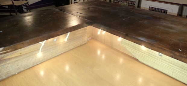 A atornillar estas piezas en el 2 x 6 conectado a la parte superior de la barra. Nunca suficientes tornillos puesto que usted probablemente tendrá mucha gente apoyándose en él.
