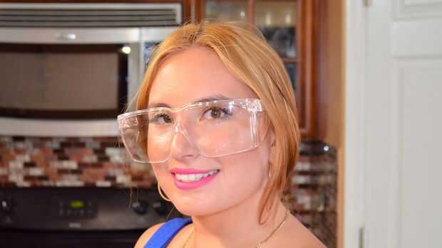 Poner gafas en la cara y guantes para protegerse de posibles lesiones.
