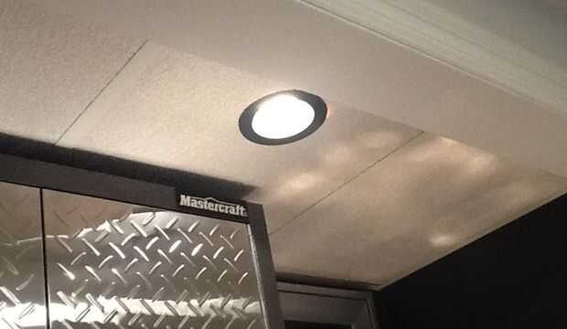 yo quería una luz olla para iluminar la zona y realmente no necesita el espacio por encima de la moldura superior por lo que he instalado un falso techo para ocultar el cableado. Esto acabó con el interior y proporciona un bonito techo reflectante.