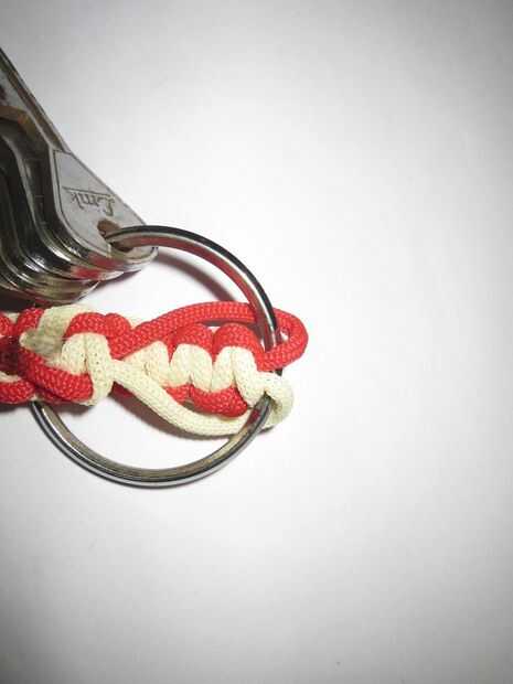 la práctica común para la fabricación de un conector de llavero paracord es un nudo simple. Sin embargo, después de probar esto, pronto noté que el nudo de grande y voluminoso mantiene sobresalen en ángulos extraños y pusiera en el camino al intentar
