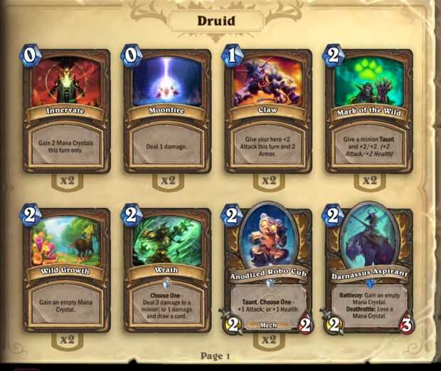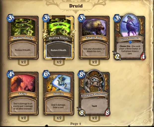 Las primeras cartas que usted debe considerar poner en una baraja son las tarjetas de clase. En este caso, la clase que estamos utilizando es la clase de druida. Asegúrese de poner en AOE tarjetas, súbdito y tarjetas de hechizo de tu clase. Tarjetas de clase son generalmente mejores que las tarjetas normales, ya que tienen un efecto mayor.