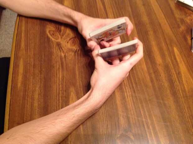 Primero de vas a querer dividir la baraja por la mitad y la mitad de la cubierta tenga en su mano izquierda y la mitad de tu mazo de cartas en la mano derecha
