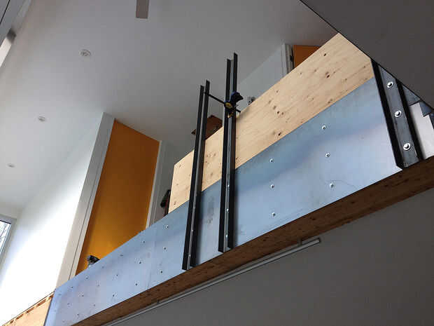 utiliza canales de 3 pulgadas para hacer los puestos. Verifique con los códigos locales de construcción, pero aquí pasamanos deban ser de 42 pulgadas de alto. hice posts de 40 pulgadas como el cristal va más altos que los postes de 2 pulgadas. Asegúrese de que los estás instalando en algo sólido.