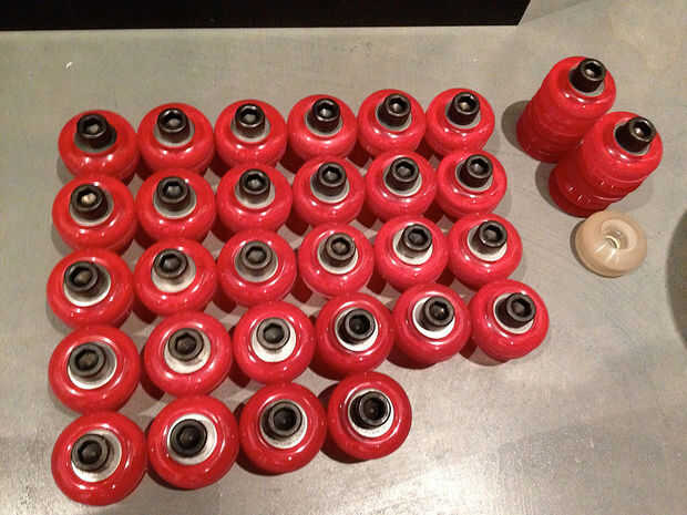 realmente no tomo la dureza de la rueda en cuenta, sé que pueden tomar una paliza. regla general es que el espesor del vidrio en mm dividido por 2 es igual al peso del vidrio en libras por pie cuadrado. por lo tanto, 6mm significa 3 libras por pie cuadrado. permite decir la medida del panel de 4 pies por 6 pies, lo que significa 24 sq/ft, veces 3 = 72 libras entonces dividir que por 4 (puesto que hay 4 ruedas por panel) que significa 18 libras por rueda... sé para un hecho que podrían manejar mucho más. la pieza más ancha de vidrio que estoy usando es cerca de 7 pies de ancho, así que en lugar de agregar un post en el centro para evitar que el vidrio doblar demasiado, acabo de poner los 2 posts más lejos de los bordes que la otra. otra cosa vale la pena destacar es que los agujeros en los vidrios deben ser por lo menos 4 pulgadas de los bordes.