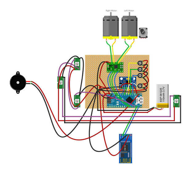 Alambre para arriba de la placa base según indicado en el esquema. Puede que desee utilizar 2,5 mm pitch encabezados al conectar los cables en el circuito de modo que fácilmente puede ser conectado o desconectado Si es necesario.