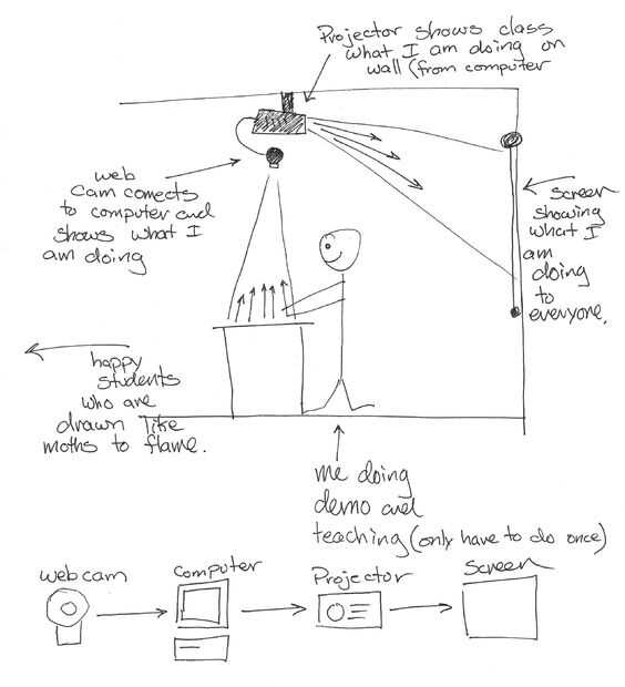 cámara de documentos o también llamada cámara arriba, es una gran herramienta para tener en clase, para mejor mostrar algunos objetos 3D o documentos.Pero por desgracia no son tan baratos!Alternativa para ellos es una proyector de opaco, proyector de