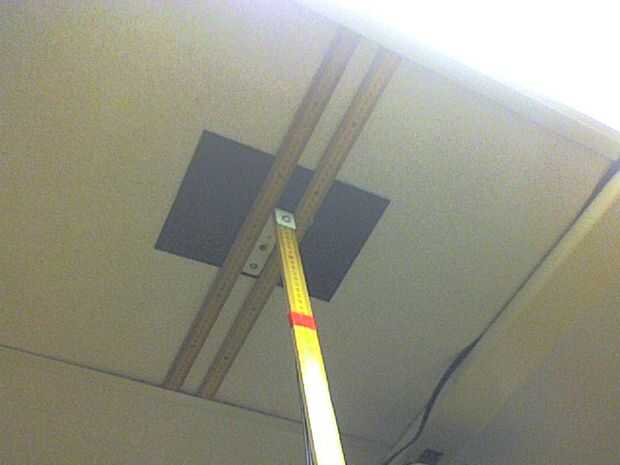 Nada es fijo todo solo cuelga allí. cuña debajo de los bordes de los azulejos del techo.