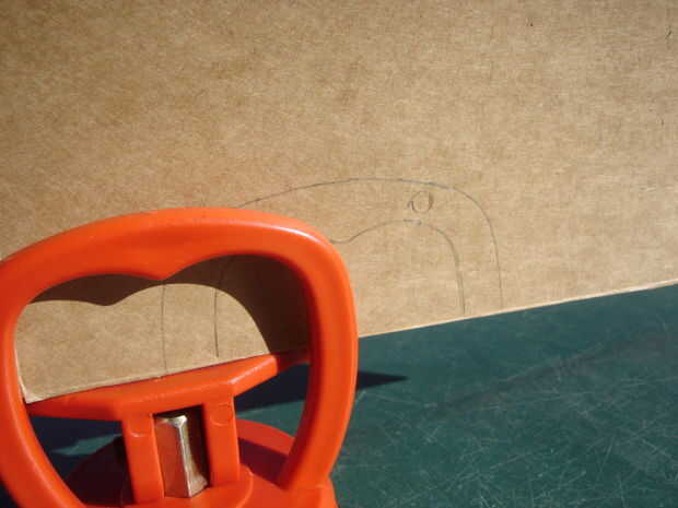 El cartón en el mango y traza la curva y alrededor de los pernos de la abrazadera.