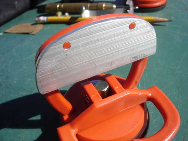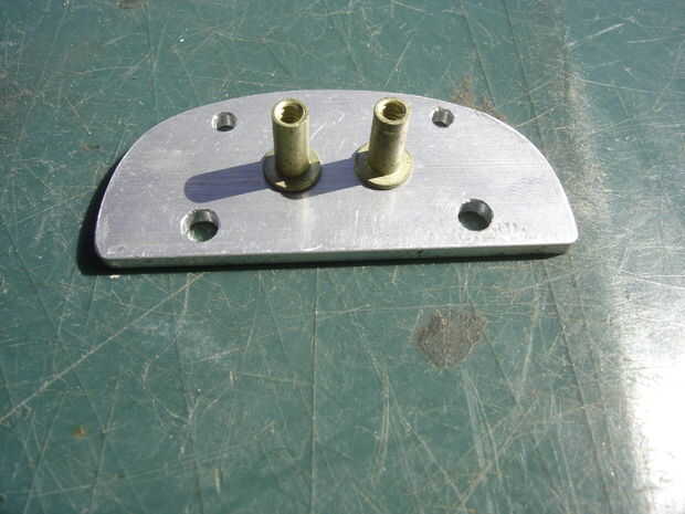 Después de hacer una conjetura áspera para los tornillos de "sujeción", perforé a mostrar los agujeros en la foto de 3/16". Las tuercas ubicadas son visibles en la foto tres de este grupo y prensado en su lugar en la foto cuatro.
