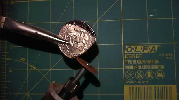 PRIMERO! Poner en las gafas de seguridad, experimentó muchos pedazos de metal volador cuando cortar la moneda. Así, a menos que se le da pequeños pedacitos de cobre como una parte permanente del ojo, gafas de seguridad!