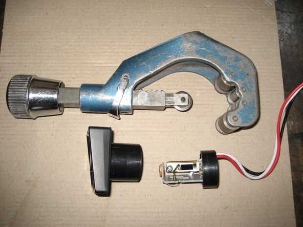 Corte el cuerpo plástico de la unidad con un cortador de tubos. Quitar las "entrañas".