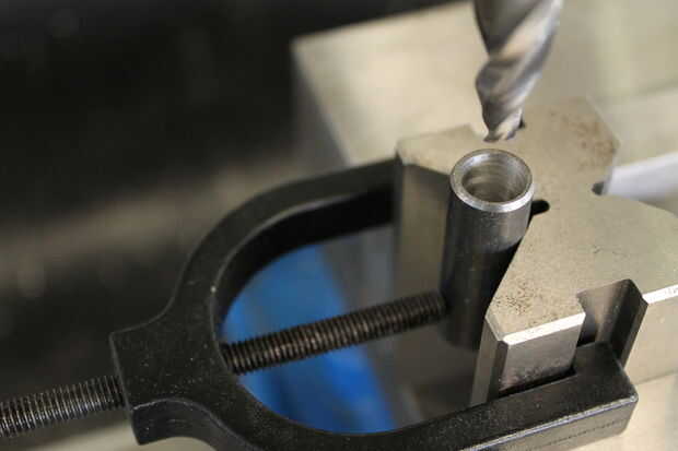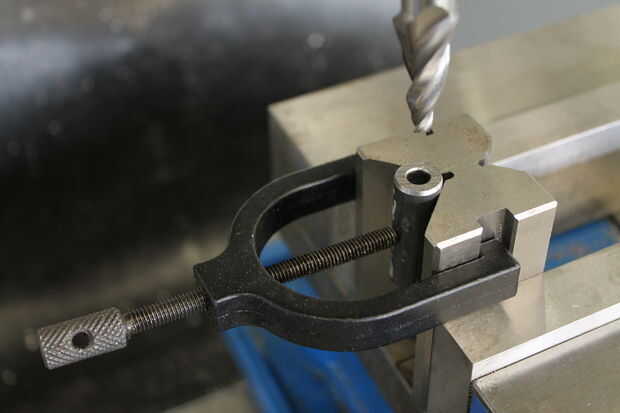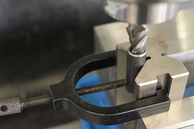 a continuación, fue apagado al molino. Usando el Vblock, afianzado con abrazadera del molino de extremo cónico en y usadas mi para darme un alivio en la parte trasera de la boquilla.