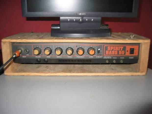 Un rápido PS para las reductoras: el amplificador que tenía disponible y ha funcionado muy bien, es el valor de un espíritu de Roland bajo 50 desde mediados de los 90 o así en un mueble crudo hice sólo para mantenerlo. Aunque yo pude han utilizado el amplificador de práctica de bebé en la papelera, pero tener la cabeza de amplificador separada permite obviamente para un mejor control, y el amplificador Roland suena muy bien, con un sonido completo y potente que funciona muy bien con efectos de alimentarla.