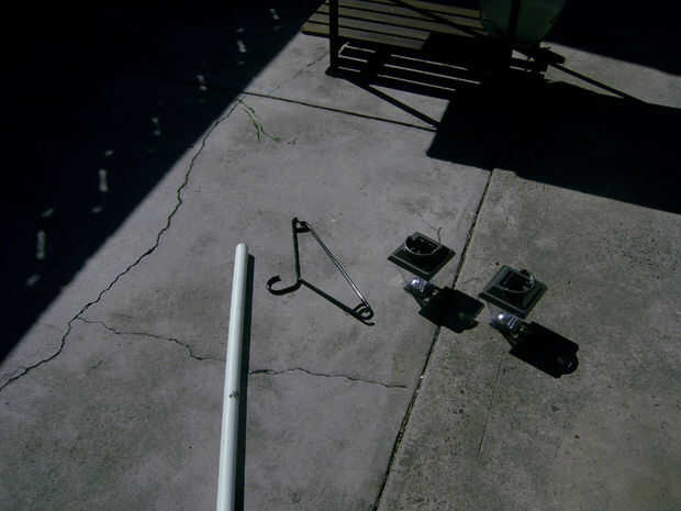 Para esto usé una lámpara recargable del jardín - le costará alrededor de $10-$15 (AU) en cualquier lugar que vende. Recogí estas en bunnings, vino en un par, así que uno y una de repuesto. La tubería fue de 28mm y de la creación de un monstruo de barro. Yo corte a 2m como nuestro cementerio es de tamaño completo. La percha era barato plástico una mentira una alrededor de la casa.