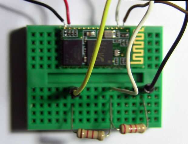 Sin embargo puesto que los pines de Bluetooth salida 3.3V, esto dolerá los pines de Arduino que toleran 5V y el tratan de un 3.3V señal desde el transceptor serie Bluetooth como una gran lógica. Por esta razón no utilizo un divisor del voltaje para la conexión entre el perno de Bluetooth transmisión/TX (clasificada 3, 3V) y el pin de recibir/RX del Arduino 0 (clasificado 5V.)