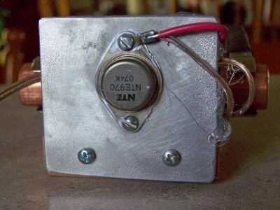 La segunda foto muestra el LM350 (TO-3 caso) montado en el disipador de calor. Observe los dos tornillos en la parte inferior que se unen al final de la base de madera. También se puede ver el crimp-on conector con un cable (rojo) que se conecta a R1 y el cable del altavoz que es el positivo (+) a la cámara.