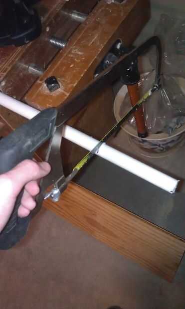 Estas son las longitudes para cortar el PVC para. Hacer una sierra para metales pero otros tipos pueden ser utilizados. * Hacer que una vez que ha terminado corte usted deshacerse de los cachitos de PVC sobrado y cepillarlos lejos y sopla a través de los tubos. Estas virutas pueden ser perjudiciales si se inhalan *.