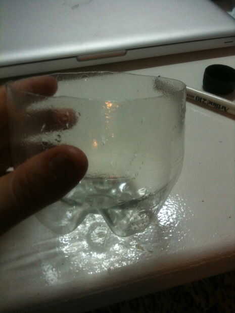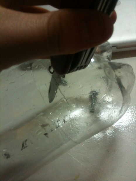 Ahora tienes sus materiales, usted necesita cortar botella usted a la altura deseada y un orificio de 0.5 - 1cm desde el labio.