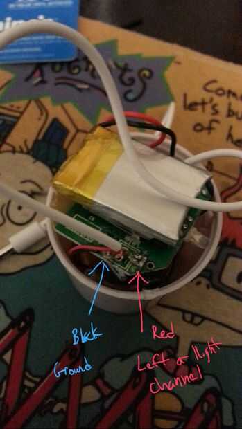 Soldar dos cables del altavoz de bluetooth marcado de rojo y negro. Es el negro y rojo es el canal izquierdo o derecho del altavoz. Lo siento no tengo las fotos realmente cerca pero cuando tengo la oportunidad la subo.
