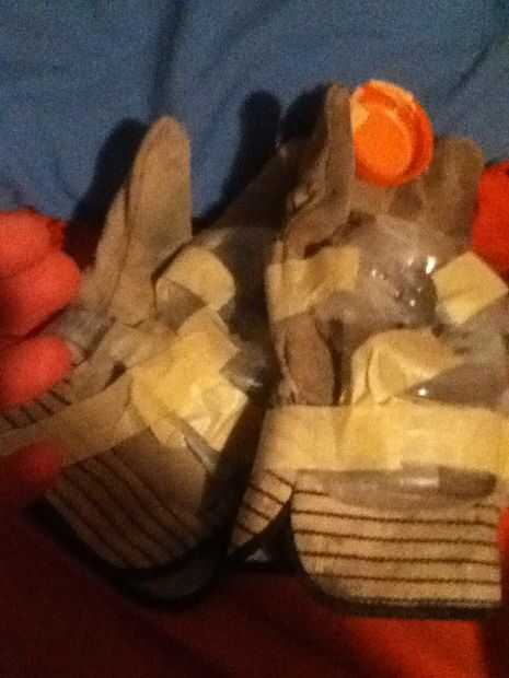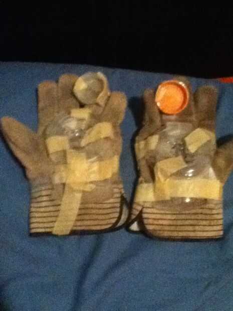 estos guantes son baratos, fácil y duradera. Son un montón de diversión. También son súper fáciles de reparar. Y les puede sacar el guante para uso regular. He visto guantes en línea y cada donde. Son como cincuenta dólares una pieza. Estos están hechos de materia alrededor de la casa.