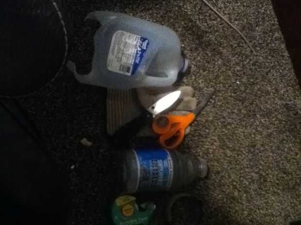 Jarra de leche. Viejo trabajo guantes (cualquier guante hará) botella de Gatorade u otra botella rígida. De la cinta. Tijeras. Cuchillo.