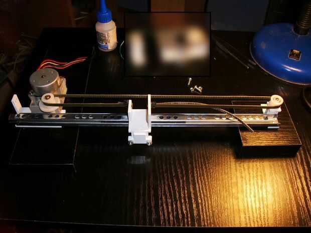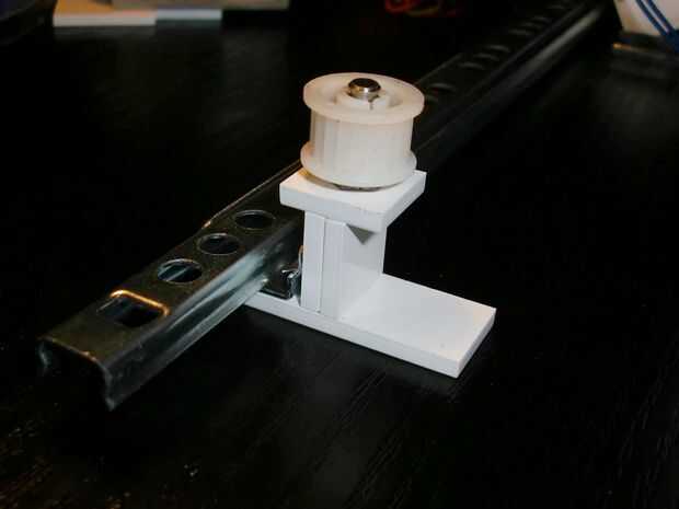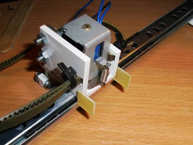 La forma más sencilla de hacerlo es con una brida pequeña. Zip el primer extremo en el soporte de electroimán (pase la correa a través de esos dos agujeros rectangulares). Luego, coloque la correa en los engranajes, estirarlo y zip al final al igual que el primero de ellos. Asegúrese de que no estira demasiado sueltas ni demasiado apretadas.