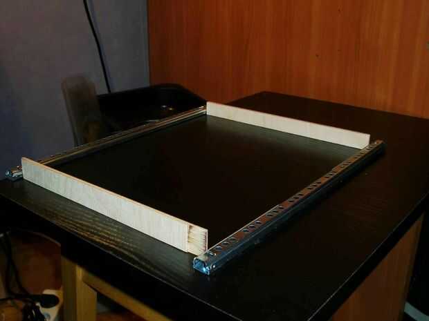 Esperar algún tiempo para asegurarse de que reguladores paralelo se pegan bien. Después de - como siempre - de la arena y limpiar las superficies. Usamos el pegamento (por plexiglás). Para medir el ángulo recto, use el tablero de los muebles base - debe coincidir. Trate de pegarla tan perpendicular como sea posible, porque esto afecta a la apariencia de todos los dibujos. Es importante que no mueva los controles deslizantes hasta que se pega completamente (le dan un par de horas).