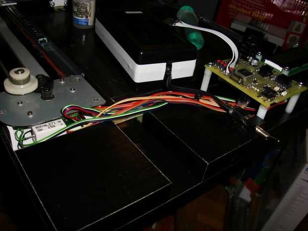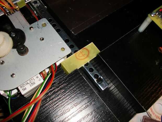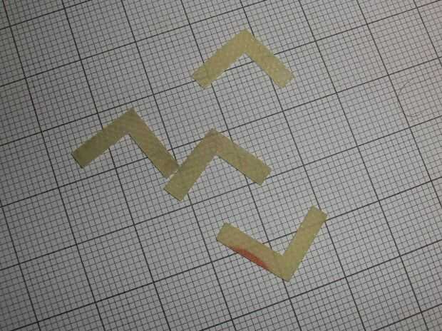 La hoja debe estar sujeto en posición constante. Utilice tijeras para cortar estos "rincones" en laminado y arena a cerca de 0.2 mm de altura. I montado con cinta adhesiva de doble cara, fijar las posiciones y luego pegados con pegamento. Para determinar posiciones, necesita dibujar líneas de principio a fin de cada eje (simplemente quitar las correas dentadas, introducir el bolígrafo y moverlo con la mano a lo largo de cada eje).